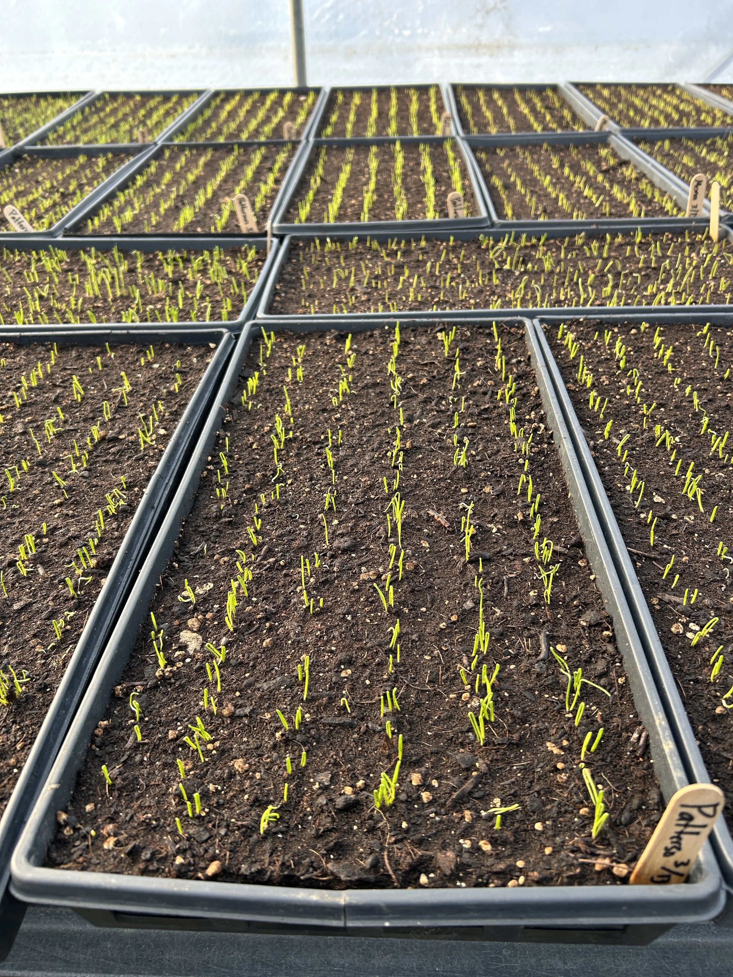 We’ve got plenty going on in the greenhouses to keep us busy while we wait to plant into the fields. Flowers for the spring plant stand are getting potted up, onions and leeks are germinating in their trays, and we just started seeding the first round of broccoli, chard, lettuces, and cabbages for the fields!
